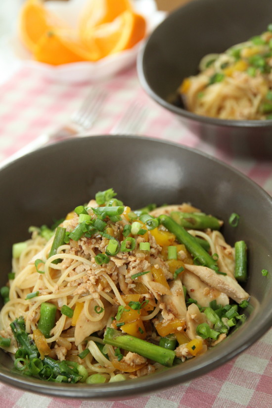 【レシピ】鶏のひき肉とアスパラのスパゲティ(写真食堂)