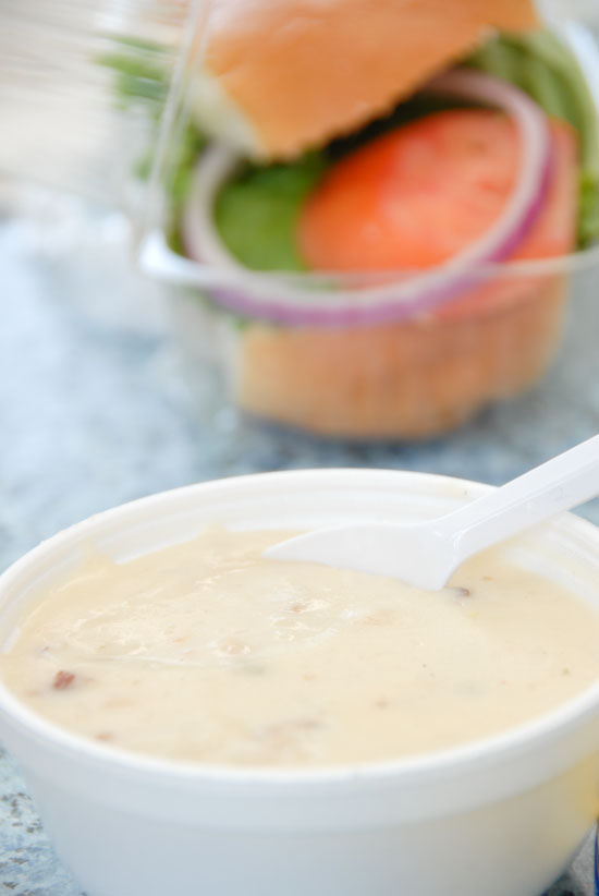 サンドイッチの他に飲み物とシチューもついてきました。