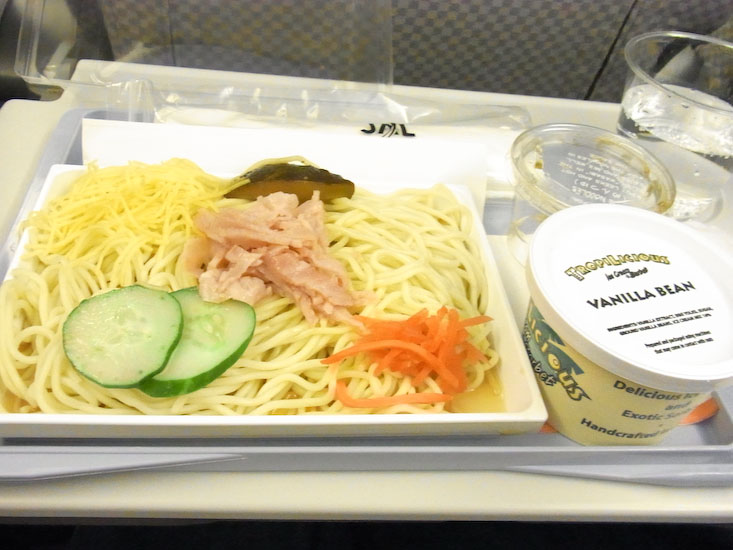 2回目は軽食で冷やし中華?!とバニラアイスクリームが出てきました。